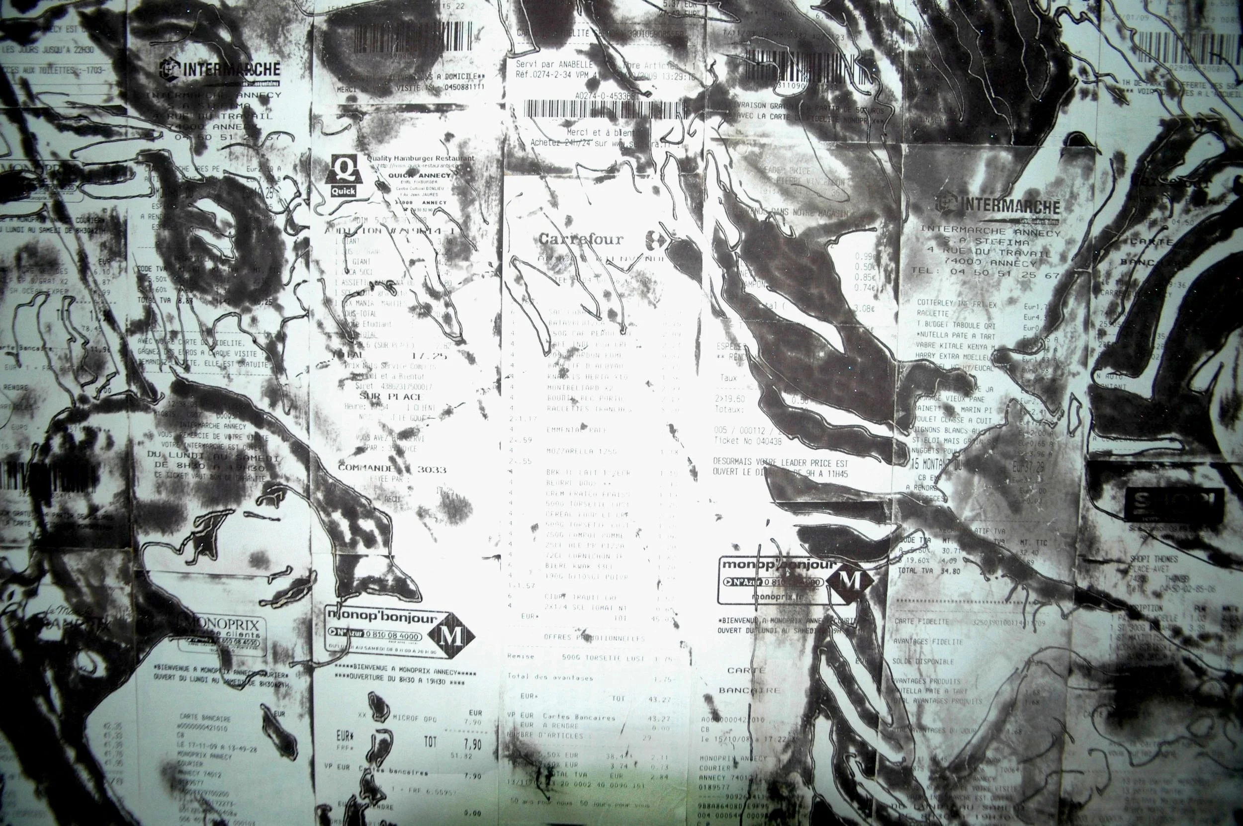tickets de caisses, 180cm par 160cm, 180cm par 120cm, réalisé en 2009 au Musée d’Art Modernede et Contemporain Saint-Étienne Métropole, Saint-Étienne en France