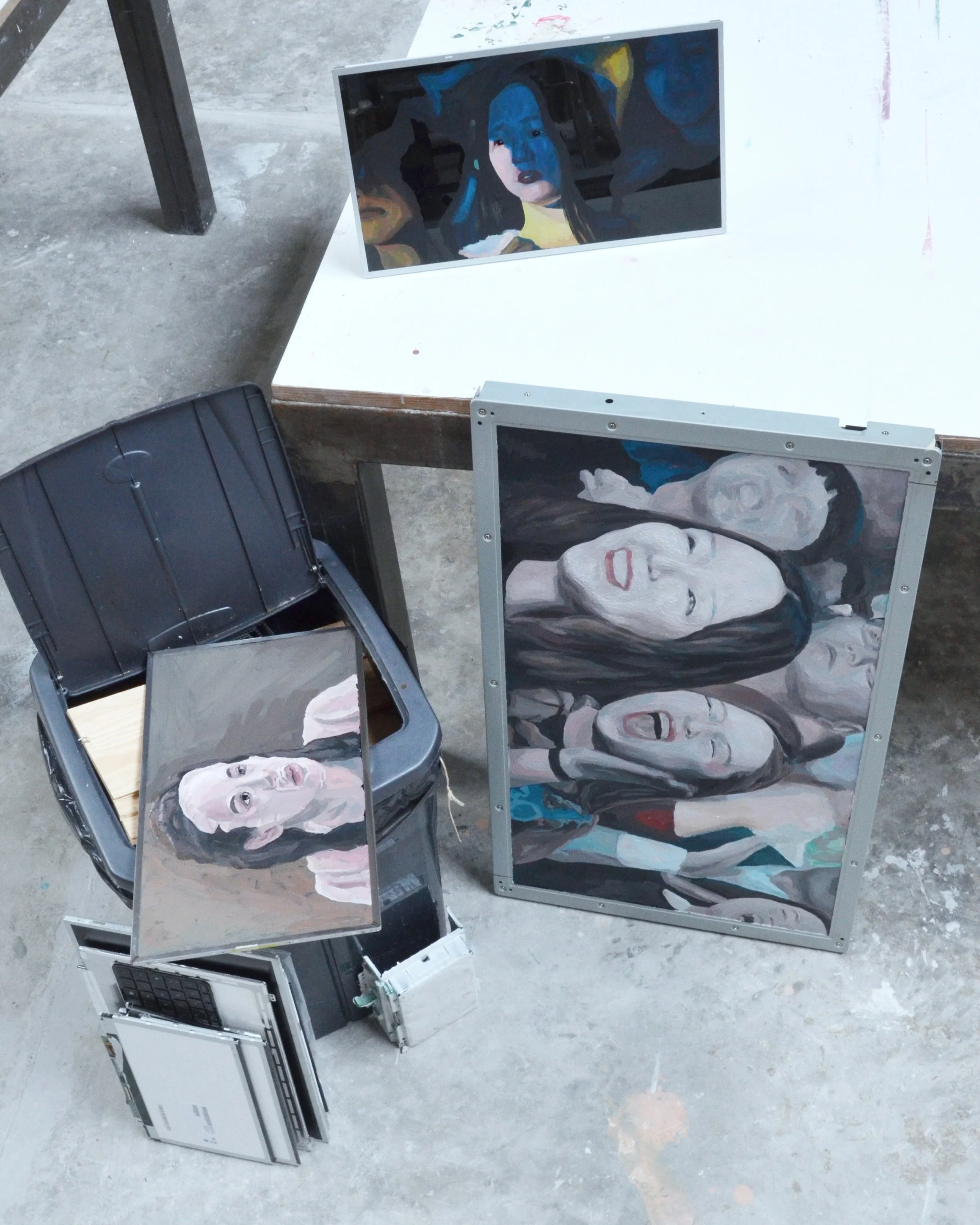 The broken screen is a dead object, a black background without a trace of information, a corpse of an image. I materialized the digital image in the form of painting. Indeed, it is a process of re-humanization of the reality digitized by the artist, with his own point of view. Here, the artist plays the role of a mortician, and gives the meaning of death to the dead objects by the gesture of a painter - made up the screen. As an act of ritual, he transfers the digitized subject into an archive object. This work has marked by an imprint of his own voice that criticizes this global popularization of digitized reality, which has become an immortal image.