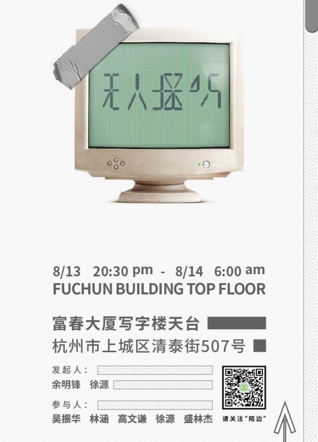 这次艺术行动围绕“天台”这样一个展览的地点而展开、以之为出发点。